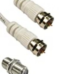 Câble coaxial satellite mâle vers mâle, blanc, 3 m de long avec connecteurs de type F fourni avec un kit de coupleur de type F.