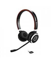Jabra Evolve 65 Stereo Casque supra-auriculaire sans fil - Casque certifié Microsoft avec batterie longue durée - Adaptateur Bluetooth USB - Noir