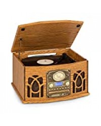 AUNA NR-620 Dab Chaîne stéréo - Compacte, Platine Vinyle 33 et 45 TR/Min, Lecteur CD,CD-R/RW & MP3CD, Platine Cassette, Radio Dab+/FM, BT, Port USB, Easy Recorder, Design Bois, Brun