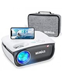 Vidéoprojecteur WiFi, WiMiUS Projecteur Bluetooth Soutien Full HD 1080p, Projecteur WiFi Synchronisation avec Fonction de Zoom, Mini Projecteur Portable pour HDMI/ USB/ TV Box/ AV/ PC/ PS4