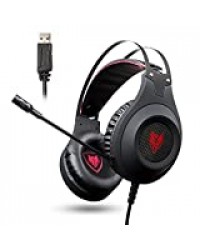 NUBWO Casque Gaming PC, N2 Casque Gaming USB Son Surround avec la Mise en muet du Micro situé sur la Coque du Micro, Casque Over-Ear pour PC /PS4/ Mac/Ordinateur Portable – Noir