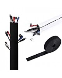 VoJoPi Cache Cable,300cm Flexible Câble Rangement avec 300cm Nylon Serre Câbles, Organisateur et Protecteu pour Câbles ÉlectriquesTélé ou PC, Réversible Noir et Blanc (∅2.5cm)