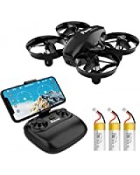 Potensic Mini Drone A20W avec Trois Batteries Longue Autonomie Drone avec Caméra HD WiFi FPV Avion Hélicoptère RC 2.4GHz 6 Axes Gyro Maintien d'altitude, Mode sans Tête pour Enfants et Débutants-Noir