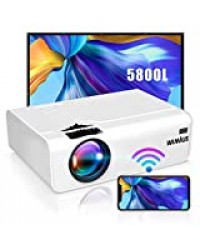 Vidéoprojecteur WiFi, WiMiUS 5800 Vidéoprojecteur WiFi Portable Supporte Full HD 1080P Audio AC3 Rétroprojecteur 720P Natif Projecteur WiFi Home Cinéma 80000 Heures pour Phones HDMI VGA AV USB